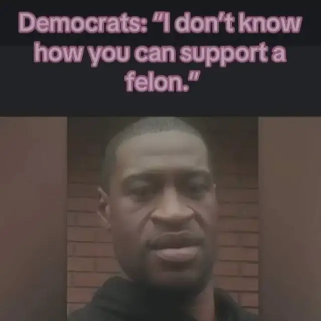 A picture of George Floyd with the text “Democrats: ‘I don’t know how you can support a felon.’”